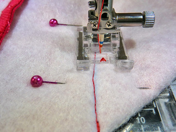 - Edgestitch along both sides and across the bottom. Do not stitch across the top.