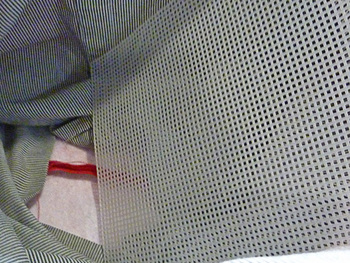 - Find the plastic canvas. Slip it down into place at the base of the exterior through the opening in the lining.