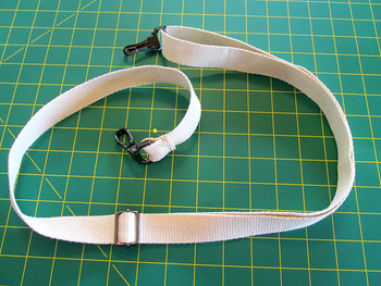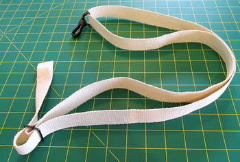 - Find the 62” length of webbing, the two 1” Large Swivel Hooks, and the 1” Adjustable Slide Buckle.