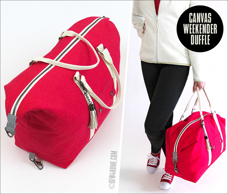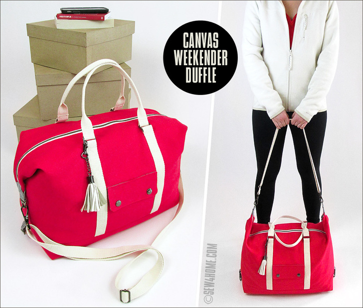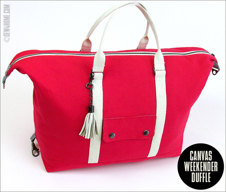 I really like this no-nonsense serious duffle, especially for those snapped down, cool hardware-blessed zipper ends! I have the triangles, I have the rectangles, I have the webbing and the batting, so all I need is some canvas, lining, and a zipper. Oh, plus the tassel hardware for the added panache, of course. I’m thinking that packing cases to match/coordinate for the inside would be packing awesomeness! Add a toiletries bag to match, too, for a real “wow” set.