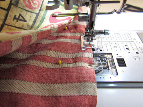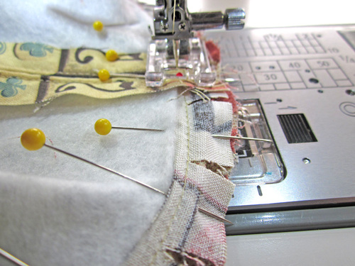 - Fold the panel in half, aligning the 11½” raw edges. Pin in place.