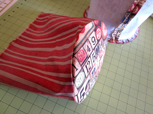 NOTE: Remember, on our samples, the bases mix and match with the sides; ie. the fabric for the main lining piece is the fabric for the exterior base and vice versa.