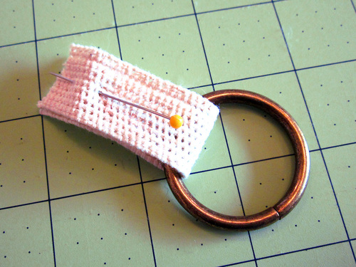 - Slip the webbing through the ring. Align the raw ends of the webbing.