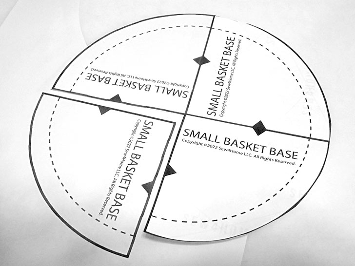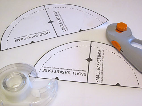 - Download and print FOUR COPIES of the TWO pattern pieces: Large Basket Base and Small Basket Base.
