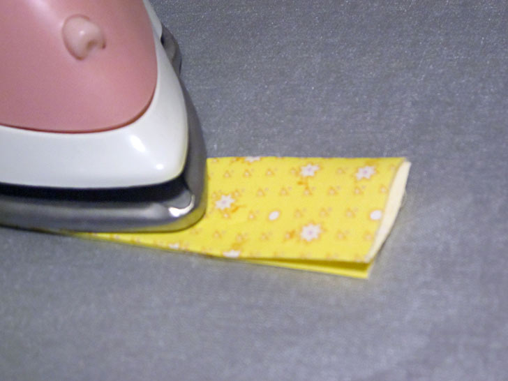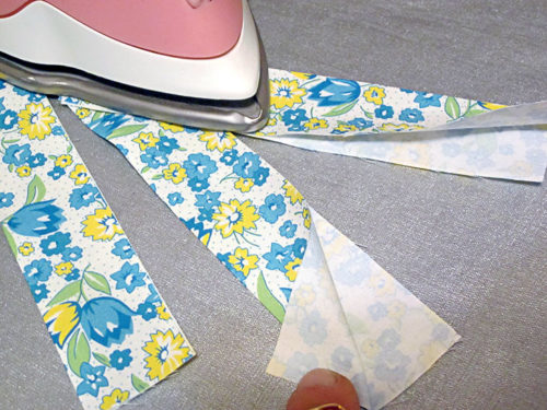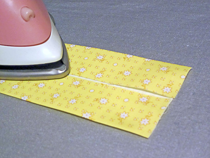 - Fold each strip in half, wrong sides together, and press to set a center crease line.