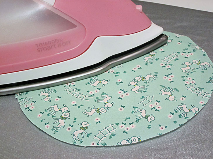 - Run a seam around the entire perimeter of the base panel layers, keeping your stitching as close as possible to the edge of the foam circle.