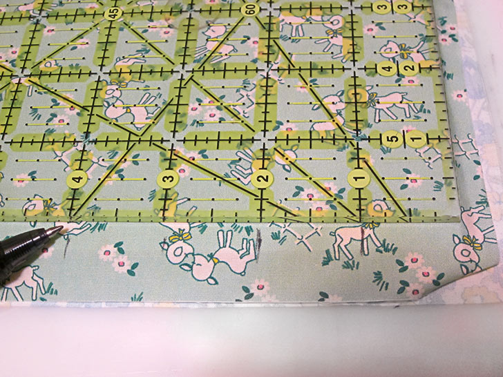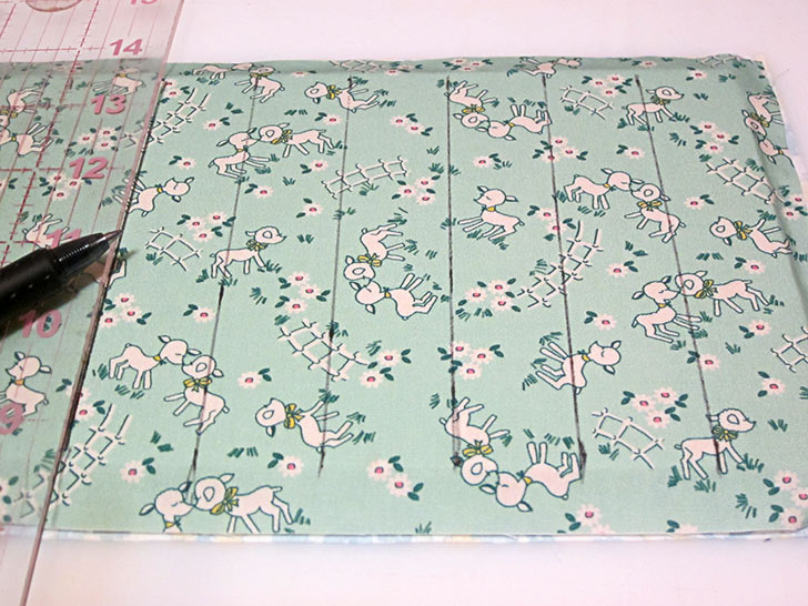 - Using your ruler and a fabric pen or pencil, and starting at the edge of the foam panel, mark in 1” increments across the width of the side panel.