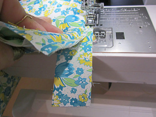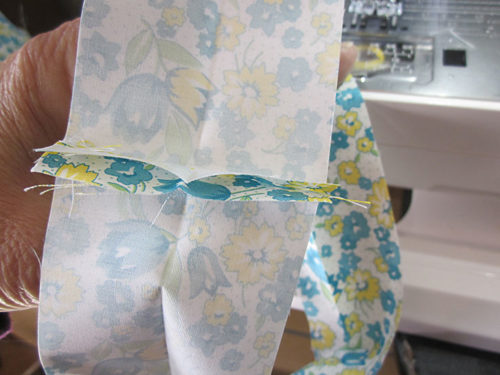 - Stitch down the length of the folded strip to secure it in place.