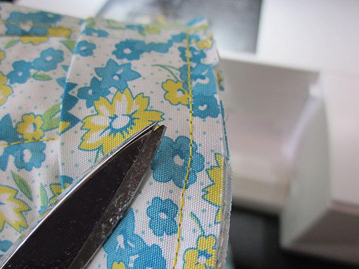 - Trim back the seam allowance to ¼” – you are trimming through all four layers of the seam allowance.