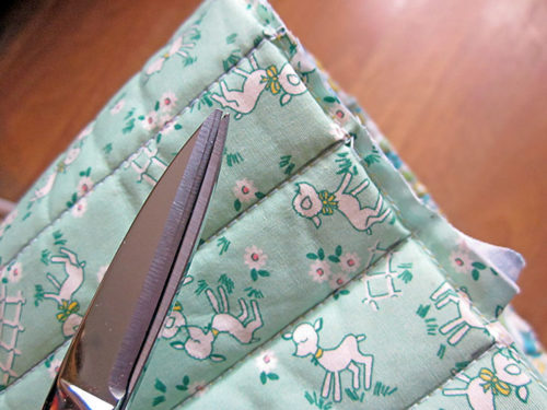 - Trim back the seam allowance to ¼” all around so all the layers are nice and flush.
