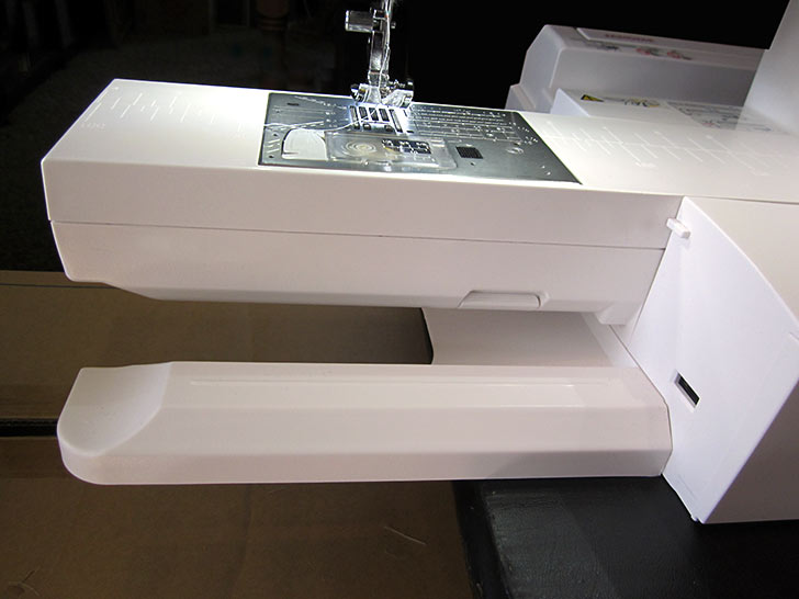 - If your machine has a free arm, now is an excellent time to use it. In addition, we found it helpful to scoot the machine so the end of the free arm is near the edge of the work surface. This allows you to gain access to the top of the basket without scrunching up the sides.