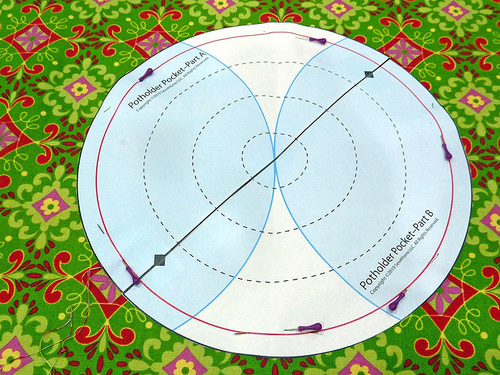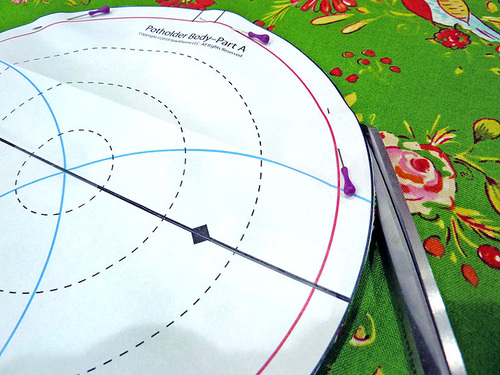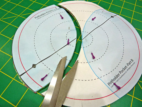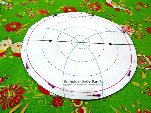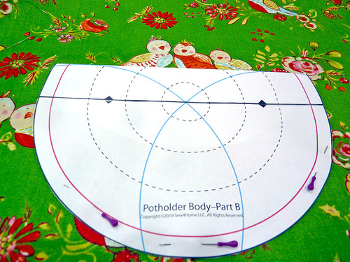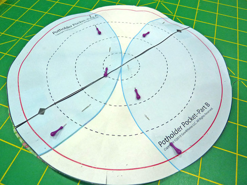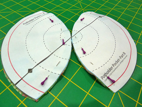 - From the fabric for the potholder pocket, use the assembled pattern to cut TWO.