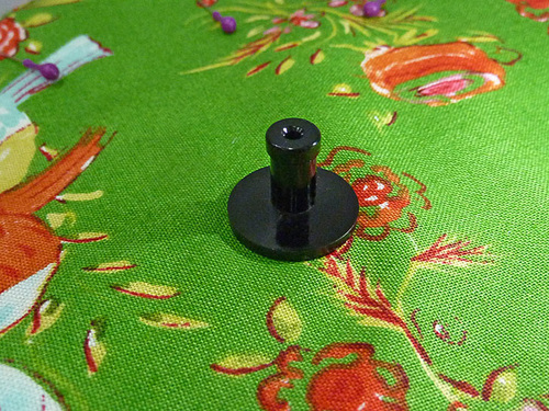 - Remove the black cap that covers the sharp center pin on the attachment. Place the exact center point of the body over this pin. The front side of the layered panels should be facing up.
