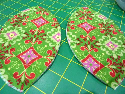 We used one layer of Insul-Bright insulated fleece between our fabric layers. This is fine for normal use. You could use a double layer for added heat protection, but you’ll want to increase the width of your binding to accommodate the thicker layers. You’ll see below how we cut back the insulated fleece along all the perimeter curves to keep the binding as flat and smooth as possible.