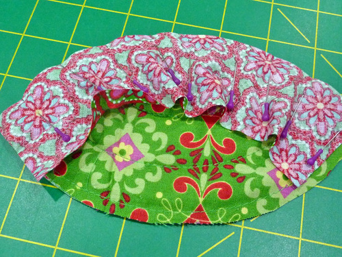 Place the binding along the top of each petal pocket and overlap the pockets onto the body
