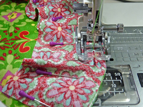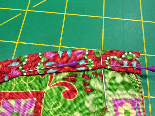 - Press the binding in place and pin well.