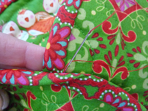 - Hand stitch the binding in place at the back.
