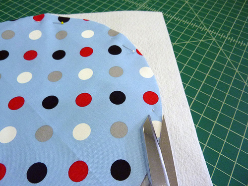 - Using a ½” seam allowance, stitch all the way around the circle. Go slowly, holding the layers flat with your fingers if necessary to avoid any puckers.