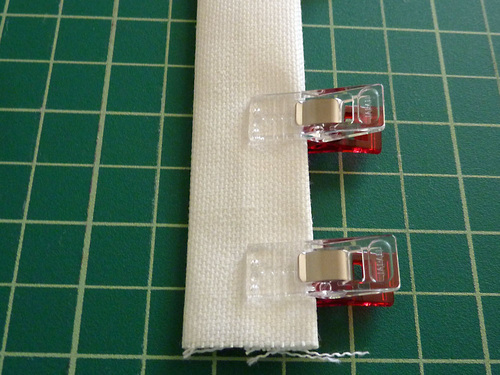 - Edgestitch along both 21″ sides. The ends remain raw.