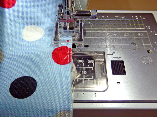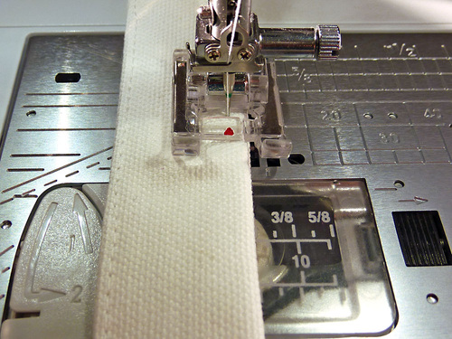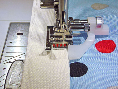 - Thread the machine with thread to match the handle fabric in the top and bobbin. Slightly increase the stitch length.