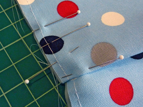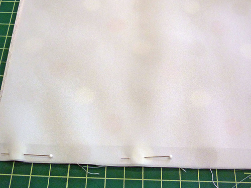 - Pin the layers together, then machine baste around all four sides so the lining doesn’t shift during the pleating process.