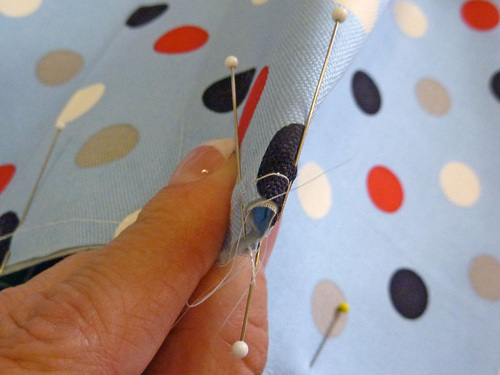 - Thread a hand sewing needle with thread to match the lining and simply tack in place, running your stitches right through the base circle seam to hide them.
