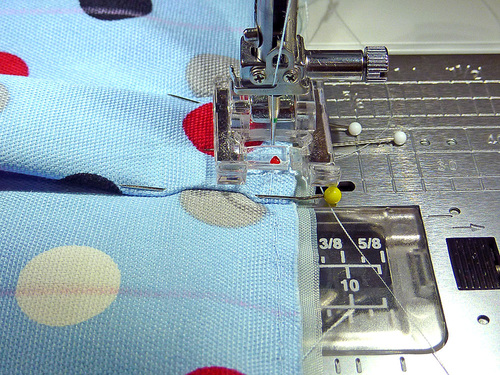 - Re-thread as necessary with thread to best match the fabric. Re-set for a normal stitch length. Using a ½” seam allowance, stitch the side seam.