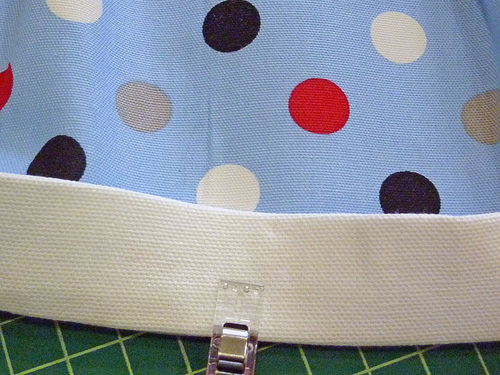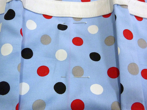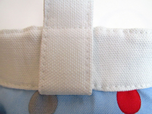 We originally used an oxford cloth by Lecien that is no longer readily available, however, pretty dots are easy to find. Just remember to look for a fabric that is heavier than a standard quilting cotton for the very best result.