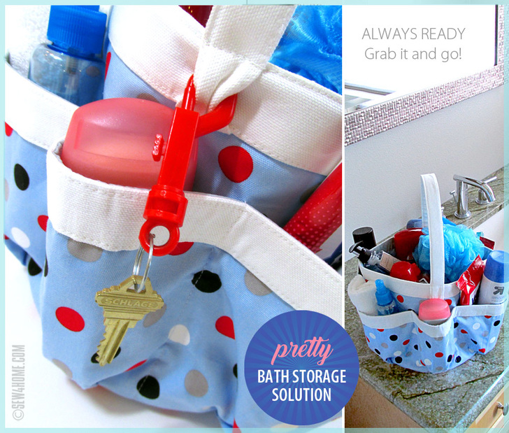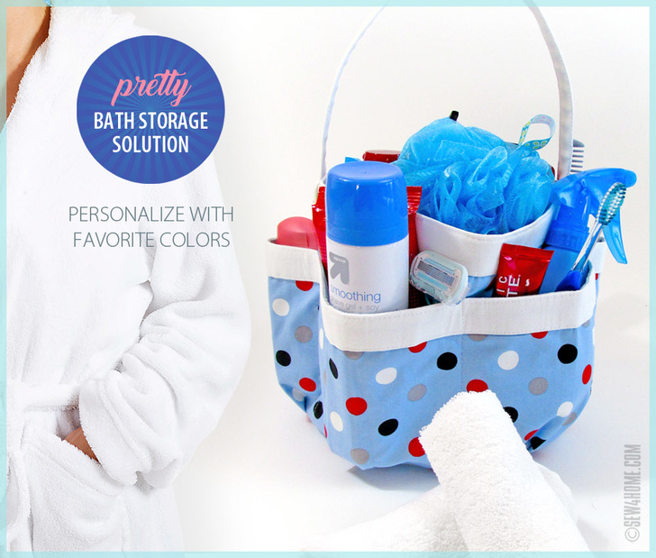 Thanks to the tiny house movement as well as more efficient living spaces overall, bathroom storage can feel like it has shrunk to the bare minimum. And then, there are the communal living challenges, like dorms or other situations where lots of folks are competing for one bath. Our great looking, super functional round caddy keeps bath necessities together in one handy organizer that’s easy to tote back and forth. We selected a mid-weight oxford cloth in a fun dot pattern; it reminded us of happy little soap bubbles. The pretty exterior is paired with a water repellent ripstop nylon for the lining.