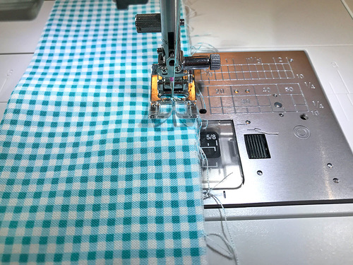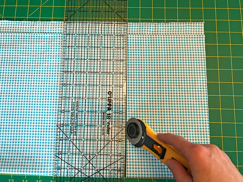 NOTE: It can be easier when cutting WOF to fan-fold the panel into a more manageable width. The gingham has a built-in “grid” to make lining up the folds easy.