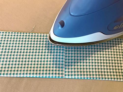 - On each panel, fold back the 17″ side ½” and press well, which means you are folding right along the edge of the interfacing.