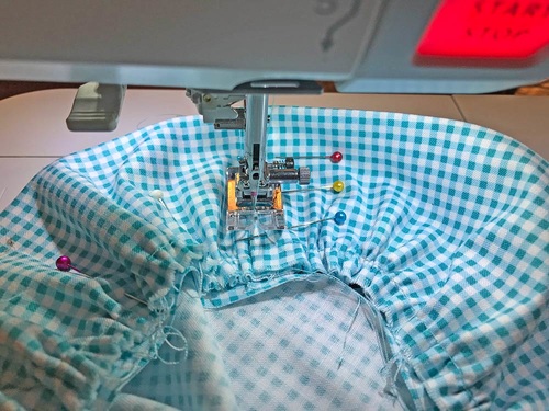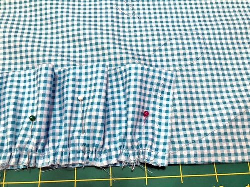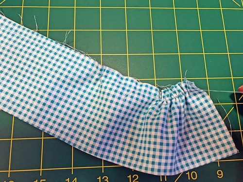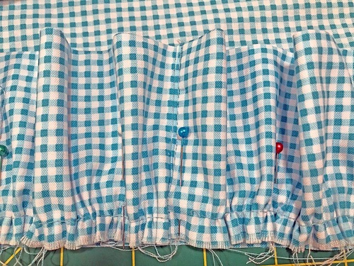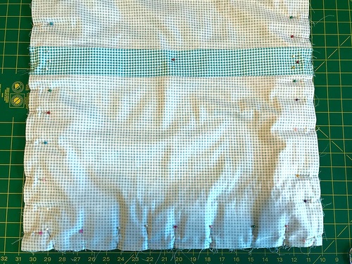 - You may need to adjust your gathers slightly to fit, but be careful not to pull too hard or you could break the stitching and have to re-ruffle… not fun.