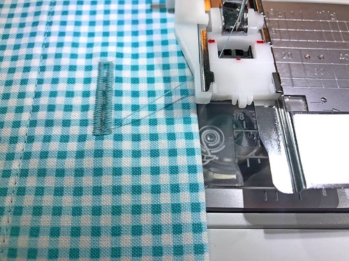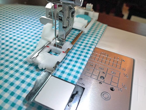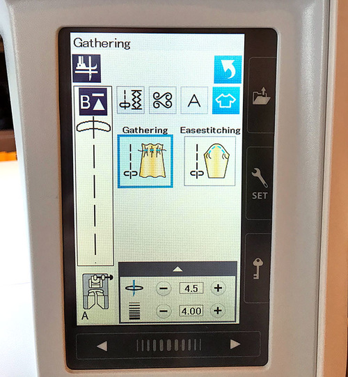 - The Janome Skyline S7 we used for our construction has a one-touch setting for machine gathering.