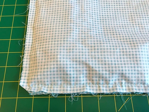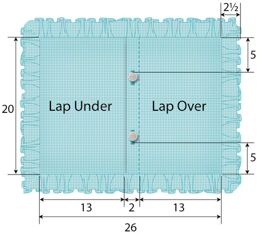 - Take both finished panels and overlap them to yield the correct finished width of 27” (the width of the front panel). Remember the panel with the buttonholes is the overlapping panel.