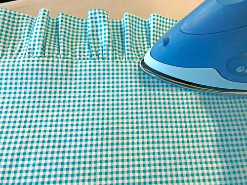 - Place the finished front/ruffle panel on your work surface right side facing up.