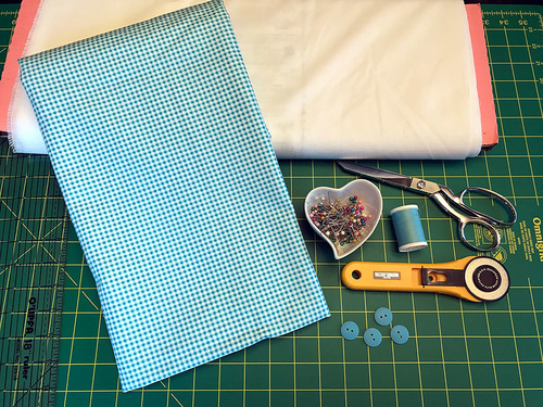 - 3 yards of 44″+ wide quilting weight gingham or similar; we originally used Gingham in Turquoise from the Julia’s Garden collection by Northcott Fabrics
