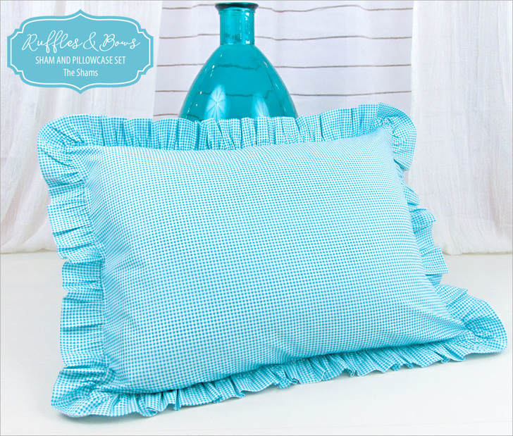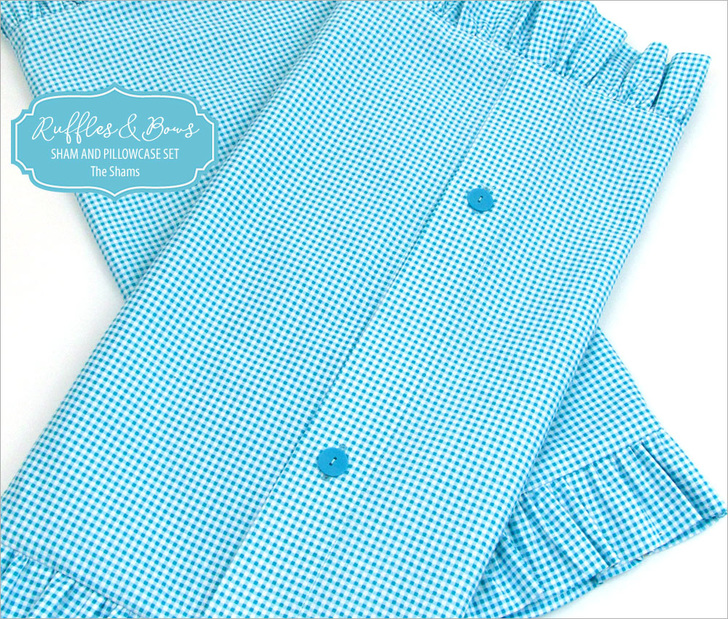 Our shams finish at approximately 20” x 26”, excluding the 2½” ruffle, to fit a standard size bed pillow. Click here to go to the instructions for the matching pillowcases.