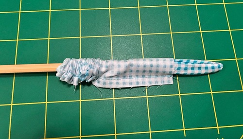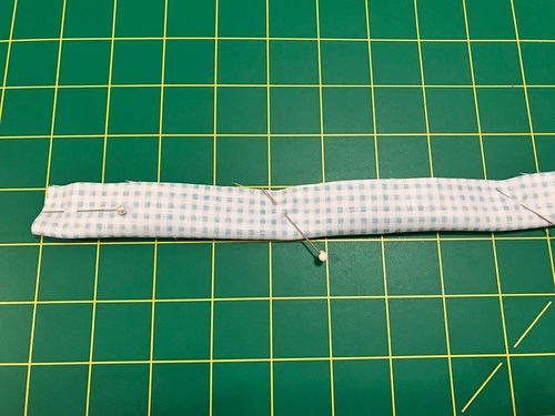 - Turn each tie right side out through the open end. We used a chopstick to help with the turn. If you struggle with turning, check out our tutorial on Turning and Pressing Skinny Straps & Ties.