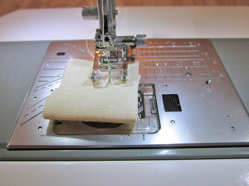 - Re-thread with thread to best match the linen in the top and bobbin. Re-set the stitch length to normal. Edgestitch the folded hems in place. To do this on very lightweight fabric, it’s helpful to use a scrap of fabric as a starter piece. Place a small folded scrap of fabric under the foot and sew across. Stop towards the end of the scrap, but do not remove it from under the presser foot.