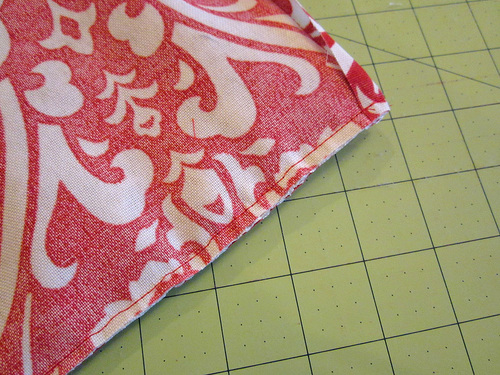 - Press back the raw edges along the opening so they are flush with sewn seam.