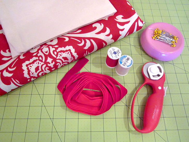 - 2⅜ yards of 45″+ medium-weight home décor fabric; see the introduction above for how to figure the length for your table