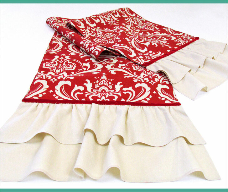 Our runner finishes at approximately 18″ wide x 92″ long (72″ runner plus 10″ ruffles on each end).