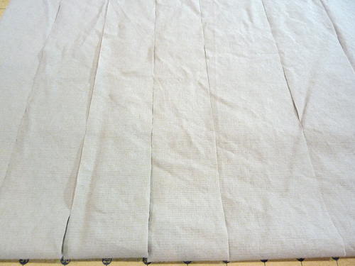 - Along the opposite 35″ side of each panel, run a gathering stitch, staying within the ½” seam allowance. Pull the gathering stitch to reduce the width from 35″ to 21″.