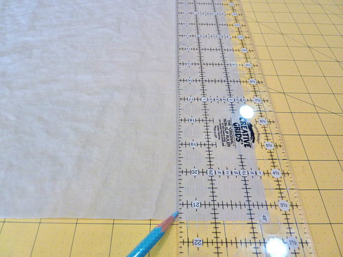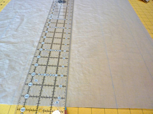 - Using a marking pen or pencil and your see-through ruler, draw placement lines for the five ruffle sets.