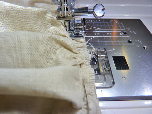 - Along one 35″ side of each panel, run a double overedge finishing seam.