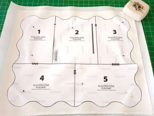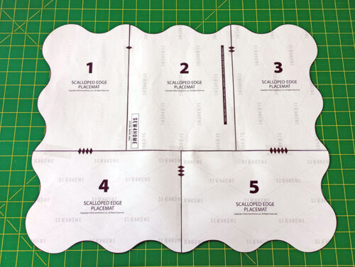 - Download and print out the scallop pattern for the perimeter of the placemat. This pattern is made up of FIVE pages that have been bundled into one PDF to make the download easier.