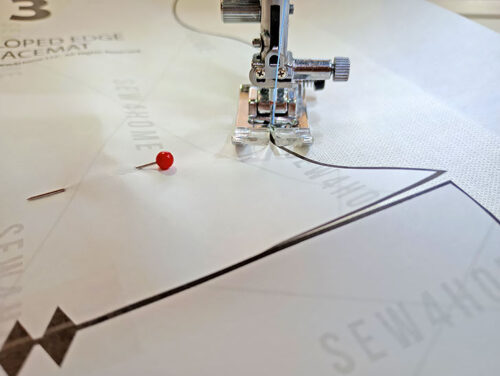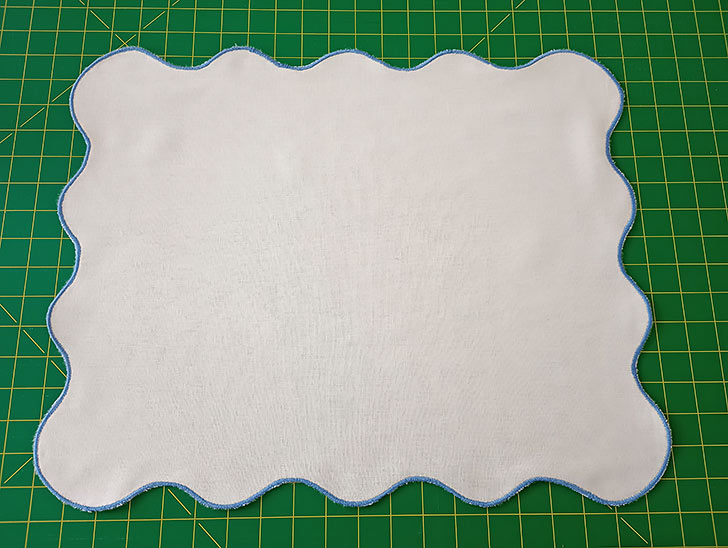 - You will be sewing THREE rows of stitching around the perimeter of the placemat to complete the scalloped edge. Each row requires a different foot.