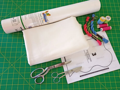 NOTE: ⅝ is the minimum needed. If you are worried about your cutting accuracy, get ¾ yard. - ¾ yard of 20”+ wide wash-away stabilizer; we used Floriani Stitch and Wash