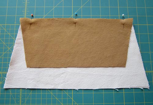 - Place the pocket panel RIGHT side DOWN on top of these two pieces. Again, aligning the bottom edges.