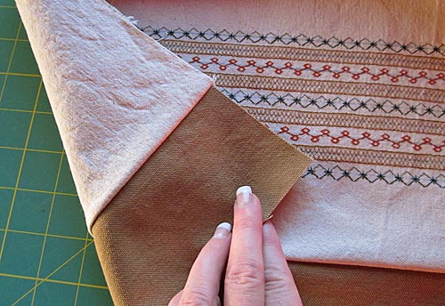 - Bring the accent strip up and over to the front, encasing the finished seam allowance. Pin in place.